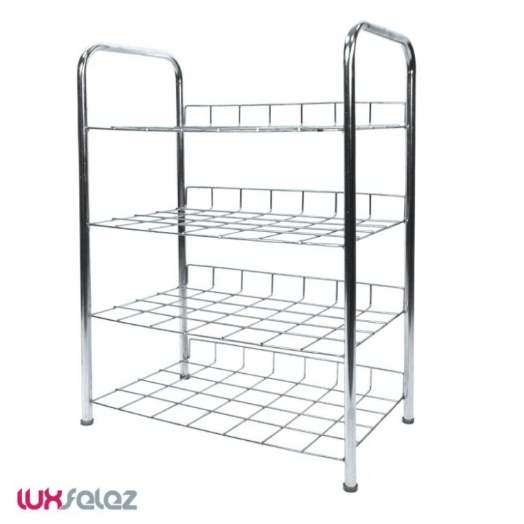 جا کفشی سناتور مدل فلزی 4 طبقه یک جا کفشی با گنجایش 8 جفت کفش و از جنس فلز آهن است که با روکش رنگ استاتیک کورهای و یا آبکاری نیکل و کروم پوشانده شده است. این جاکفشی علاوه بر زیبایی ظاهری، به علت استفاده از لوله و مفتول ضخیم در برابر وزن و رطوبت بسیار مقاوم است.